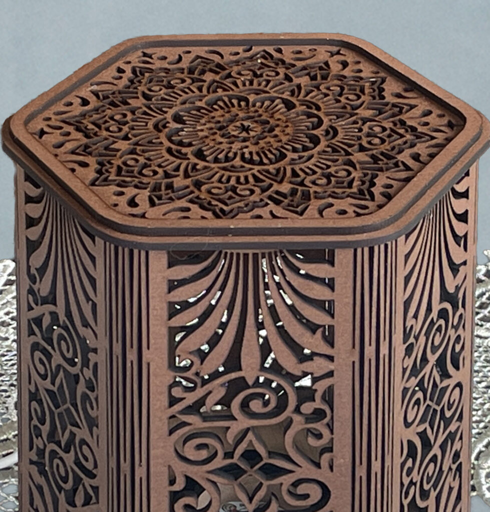 伝統的な曼荼羅の幾何学美を、レーザーカットによる精密な造形で再構築。